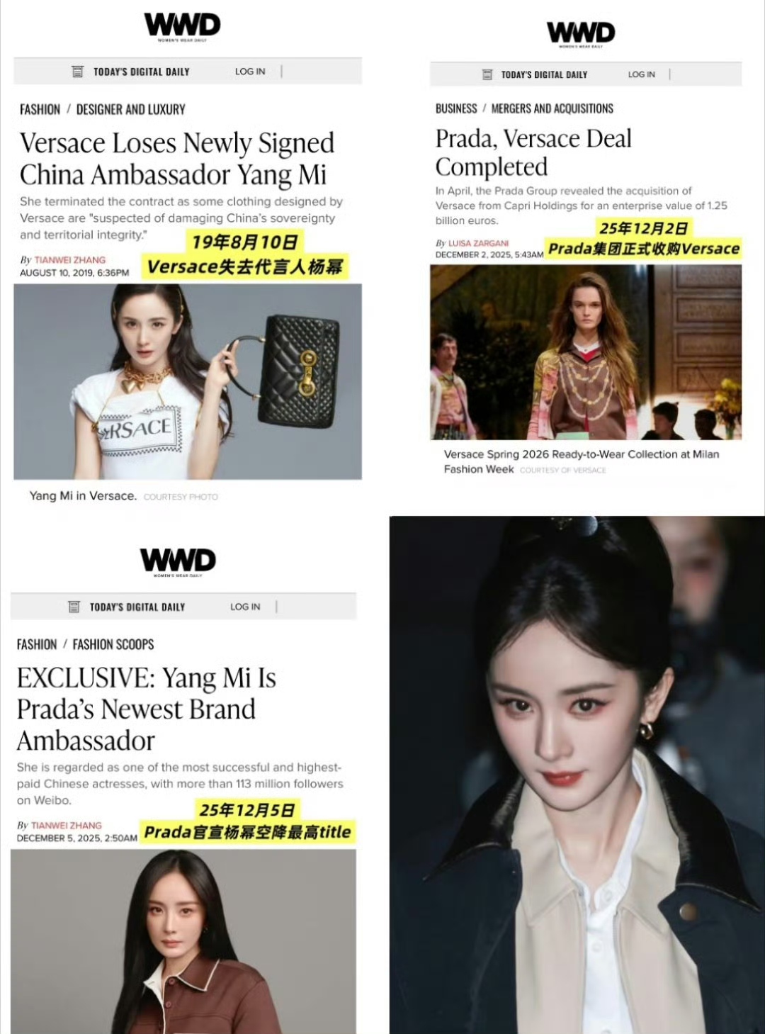 就在尖叫之夜前几天,Prada正式官宣杨幂成为品牌代言人。